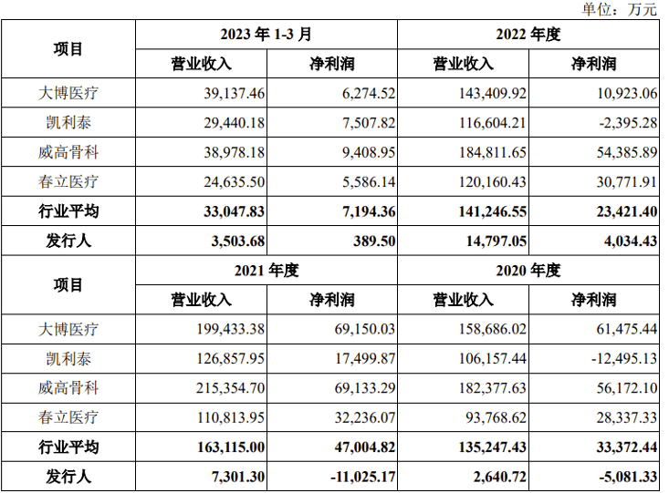天星医疗经营情况与同业可比公司比较情况