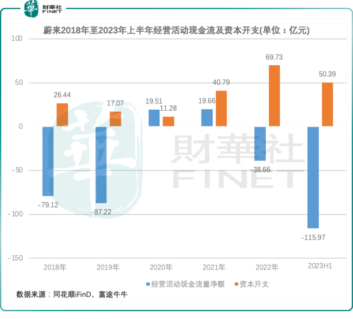 在过去三年,蔚来资本开支大幅上升,均达40亿以上,但2022年及2023年经营活动现金流净额分别为-38.66亿元和-115.97亿元,由此可见蔚来的烧钱速度之快。