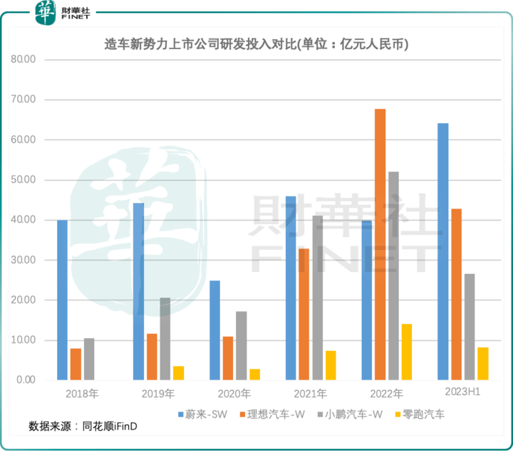 自蔚来创立以来,李斌一直强调长期主义,以此走上了以创新驱动未来的发展战略。在研发领域,蔚来认为拥有核心科技才能立于不败之地,为此挥金如土,出手阔绰。根据统计,2018年以来,除了2022年研发投入低于理想(02015.HK)(LI.US)和小鹏(09868.HK)(XPEV.US),蔚来其他年份的研发投入均显著超过其他造车新势力上市企业。