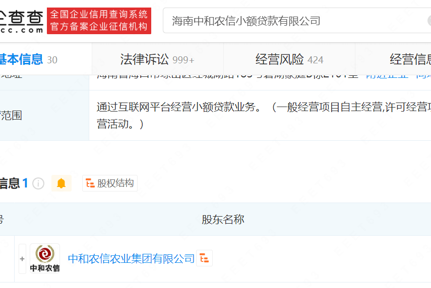 中和农信的唯一股东为中和农信香港有限公司,由于未能穿透股权,并不清楚目前中和农信香港的股权结构与持股比例。