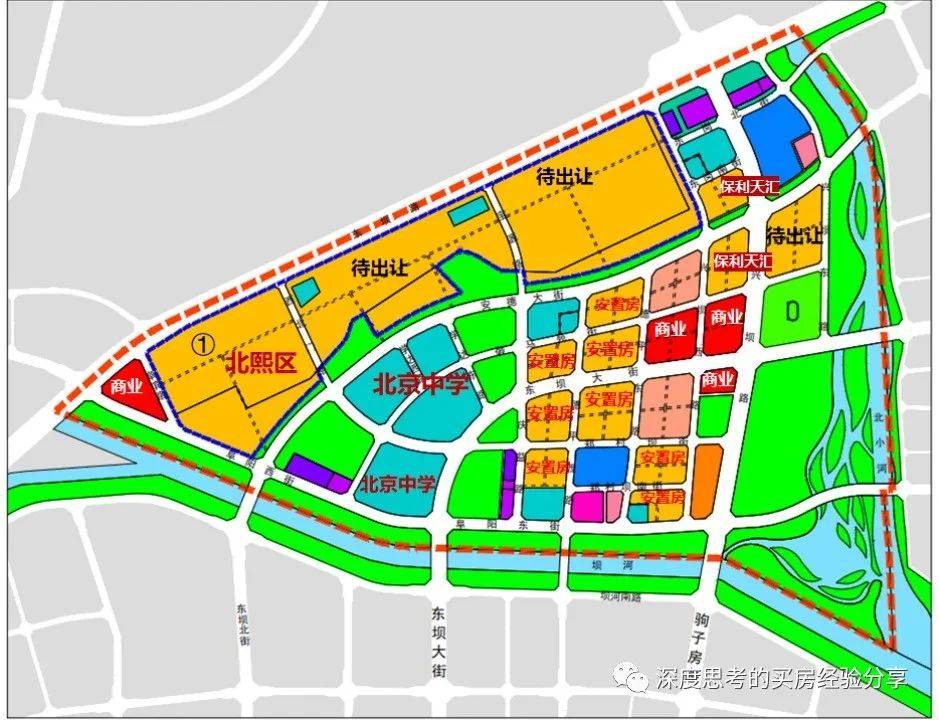东坝坝河北黄色的都是规划的住宅区(后续会建设更多的住宅),也有一大片安置房已经建好了,加之北熙区也在建设,片区内的学校规划了学校,医院,商业综合体。目前看会形成一个较为完整生活圈及一定规模的住宅群,有利于整个板块的保值、增值。