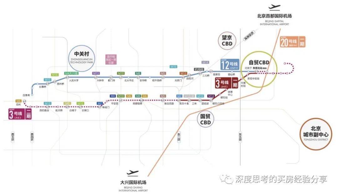 其中12号线(在建),连接四季青桥和官庄路口西,串联三元桥商圈、丽都商圈、望京商圈,预计2024年上半年通车;地铁3号线(在建),连接东四十条与曹各庄北站,串联国贸商圈、三里屯商圈、朝阳站,预计2024年年底开通运营一期西段;R4线(规划中),连接北京首都国际机场T3和大兴国际机场,预计2028年通车。