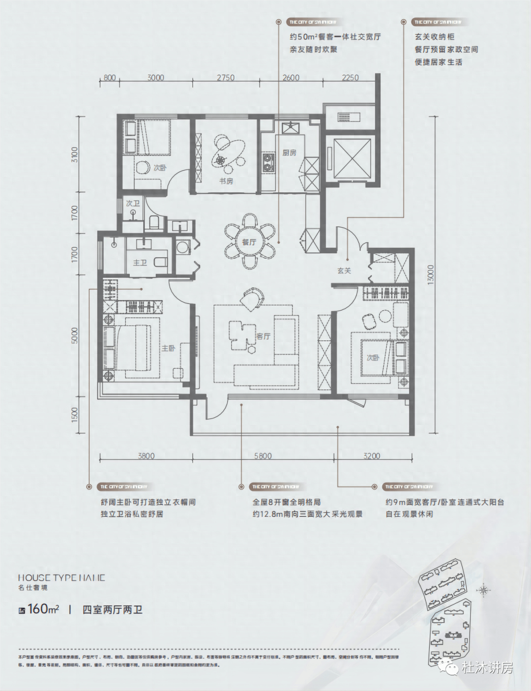 160平的四居双卫,此户型在南区,9米的大阳台极为亮眼,入户私密玄关,客厅面宽5.8米,LDK设计,全明格局,改善必看!