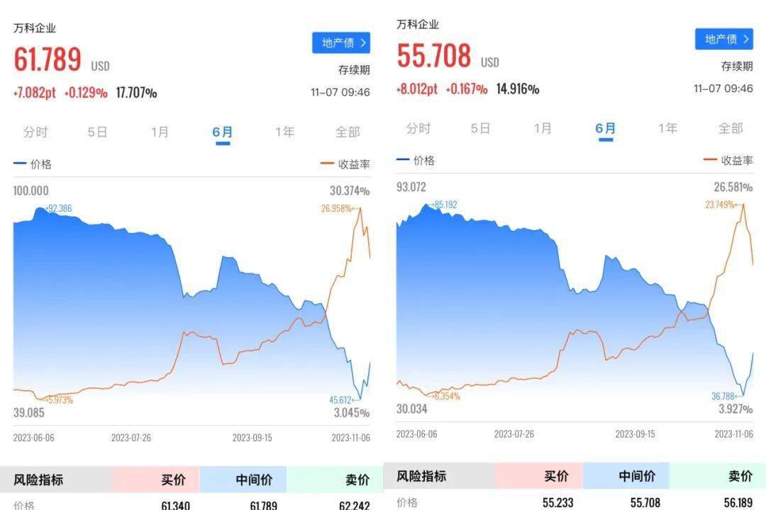 在评级机构下场后,二级市场也“用脚投票”,万科两笔境外债价格开始暴跌。