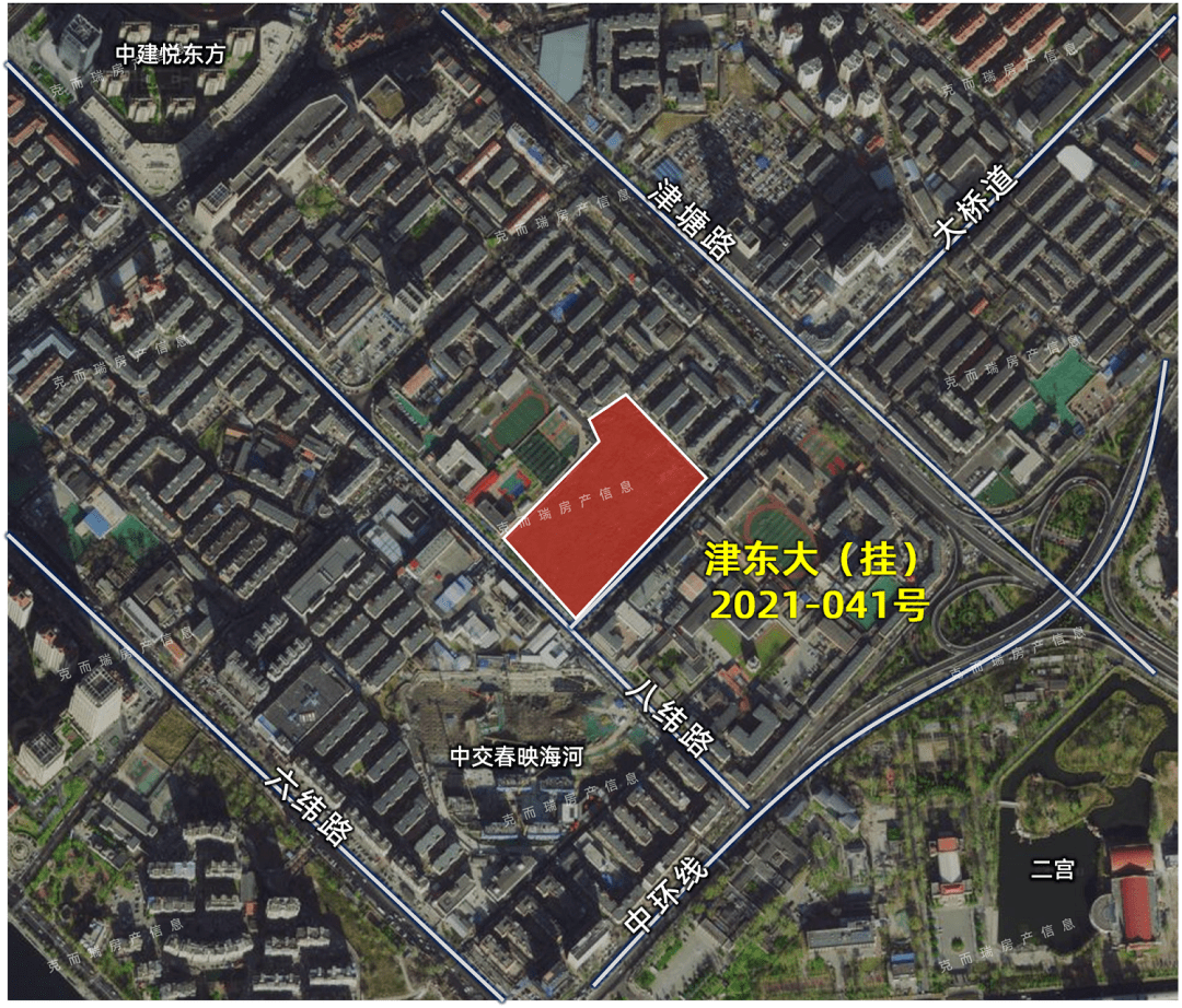 津东大(挂)2021-041号,地块位于河东区八纬路与大桥道交口,其四至为:东至大桥道,南至八纬路,西至田庄中学,北至文华里。