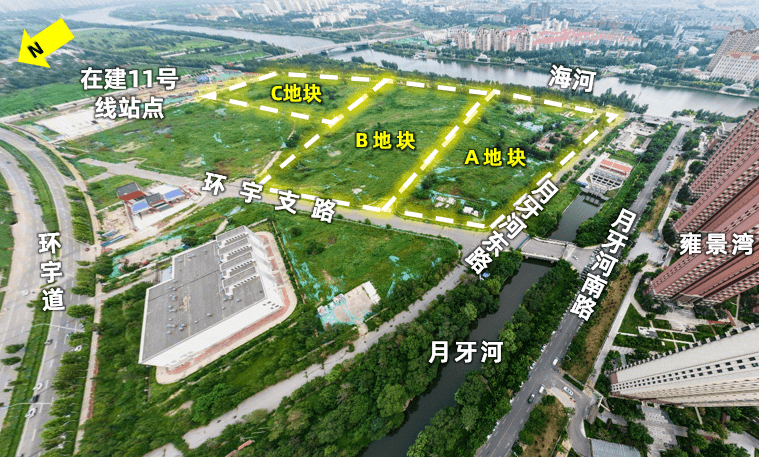 津东丽海(挂)2023-004号,位于东丽区海河柳林片区海河东路与月牙河东路交口东北侧。
