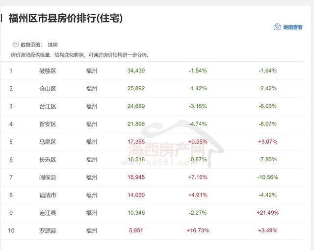 中国房价行情网公布福州六区+两县(市)住宅房价排行,10福州所辖是个县(市)区房价“四涨六跌”。