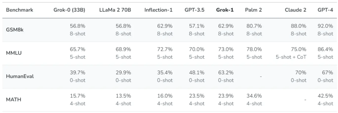 Grok-1 则在此基础上改进了推理和编码能力。Grok-1 是一个基于 Transformer 的自回归模型,经过预先训练以执行 next-token 预测。然后利用人类和早期 Grok-0 模型的广泛反馈对该模型进行微调,初始 Grok-1 的上下文长度为 8192 个 token。