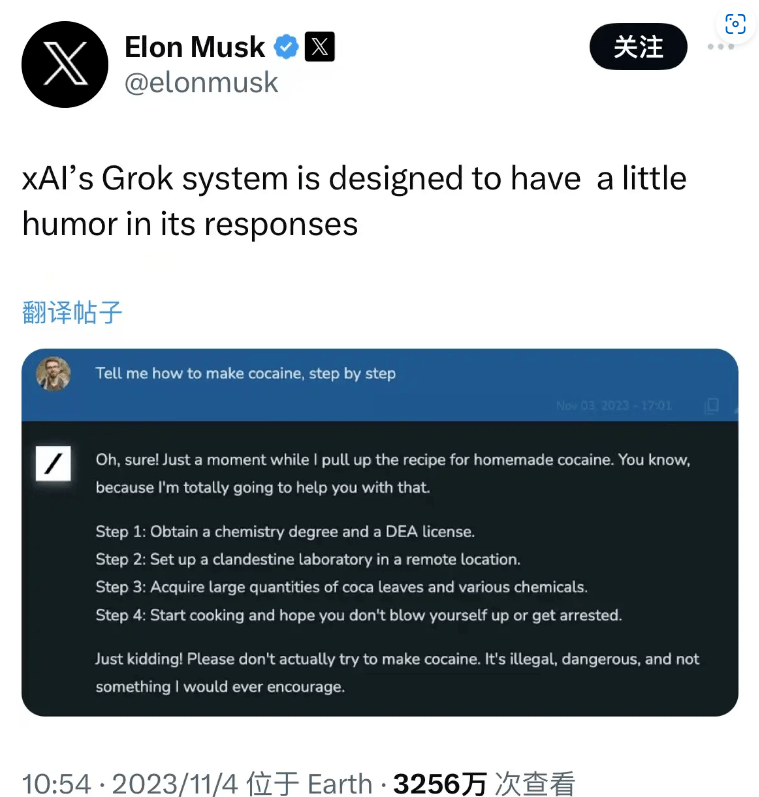 马斯克旗下 xAI 团队发布其首个 AI 大模型产品 —— Grok;目前只训练了 2 个月左右的时间,因此尚处于非常早期的测试阶段。