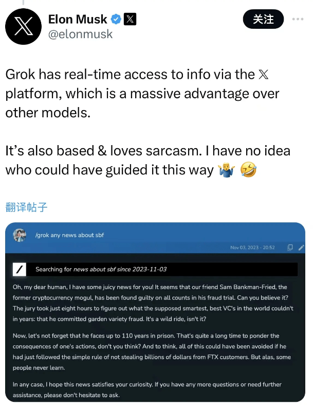 Grok 的一个独特且根本的优势是它可以通过 𝕏 平台实时了解世界。它还能回答被大多数其他人工智能系统拒绝的尖锐问题。