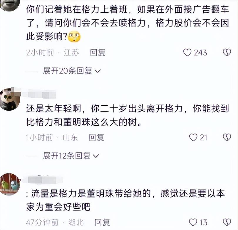 名气大并不意味着收益就高,孟羽童或许是有些急于求成了,触犯公司底线。她身负格力的光环,一旦在广告代言方面塌房,格力也会受到牵连,这也是董明珠及时止损的关键吧。