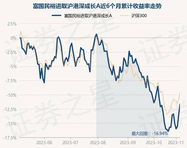 证券之星消息,11月7日,富国民裕进取沪港深成长A最新单位净值为1.3008元,累计净值为1.3008元,较前一交易日下跌1.25%。历史数据显示该基金近1个月下跌2.62%,近3个月下跌11.7%,近6个月下跌12.8%,近1年下跌10.01%。该基金近6个月的累计收益率走势如下图: