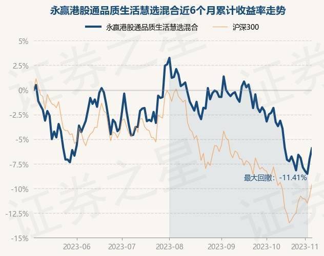 证券之星消息,11月7日,永赢港股通品质生活慧选混合最新单位净值为0.632元,累计净值为0.632元,较前一交易日下跌0.78%。历史数据显示该基金近1个月下跌4.62%,近3个月下跌8.07%,近6个月下跌6.63%,近1年下跌11.36%。该基金近6个月的累计收益率走势如下图: