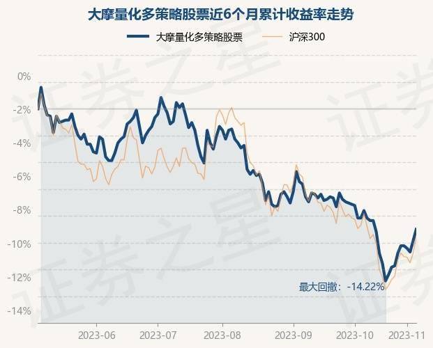 证券之星消息,11月7日,大摩量化多策略股票最新单位净值为0.967元,累计净值为0.967元,较前一交易日下跌0.21%。历史数据显示该基金近1个月下跌2.22%,近3个月下跌7.11%,近6个月下跌9.2%,近1年下跌8.77%。该基金近6个月的累计收益率走势如下图: