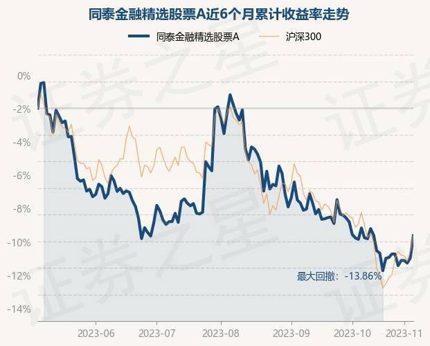 证券之星消息,11月7日,同泰金融精选股票A最新单位净值为0.7763元,累计净值为0.7763元,较前一交易日上涨0.32%。历史数据显示该基金近1个月下跌0.82%,近3个月下跌9.55%,近6个月下跌9.32%,近1年下跌2.06%。该基金近6个月的累计收益率走势如下图: