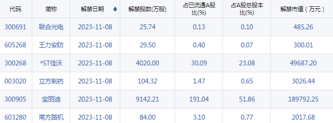 【限售解禁】