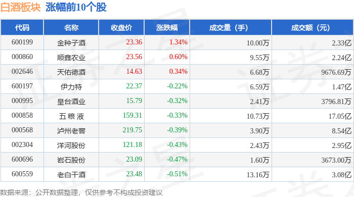 北向资金方面,当日白酒板块北向资金持股市值为2152.71亿元,增持0.49亿元。其中增持最多的是泸州老窖,增持了0.97亿元。减持持最多的是贵州茅台,减持了1.03亿元。白酒板块北向资金持股变动明细见下表: