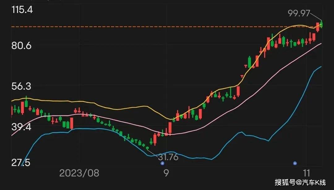 在双方沸沸扬扬“交锋”中,问界母公司赛力斯则又赚到了一波关注,股价于11月6日再次迎来涨停,报收97.9元/股。而这已是问界M7上市以来,赛力斯的第8个涨停!