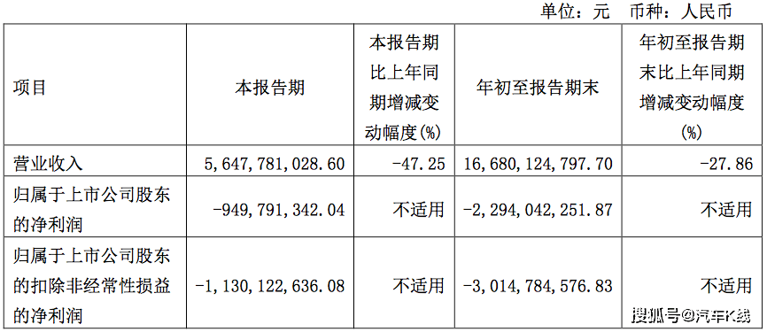 赛力斯三季报显示,今年第三季度实现营业收入56.48亿元,同比下滑47.25%,归属于上市公司股东的净利润(简称“归母净利润”)为亏损9.5亿元,同比基本持平。