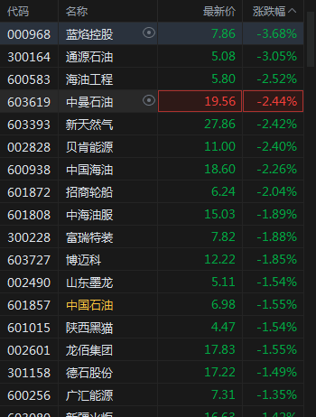 油气股开盘下挫