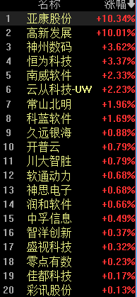 亚康股份、高新发展双双涨停,常山北明、恒为科技等多股跟涨。