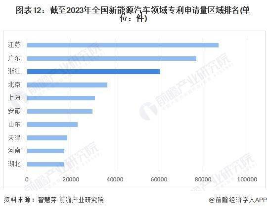 中国方面,江苏省是中国新能源汽车申请专利数量最多的省份,截至2023年2月,浙江省新能源汽车领域累计专利申请了突破6万件,位居全国榜首。广东省、浙江省新能源汽车专利数量均超过1万项。中国当前申请省(市、自治区)新能源汽车专利数量排名前十的省份还有北京市、安徽省、上海市、山东省、河南省、天津市、重庆市。