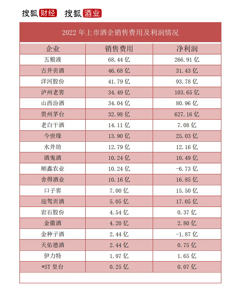 同时,古井贡酒的销售费用远超其净利润水平,即使放在整个行业中来看,古井贡酒的销售费用占净利润比例也相当之高。