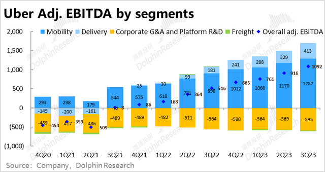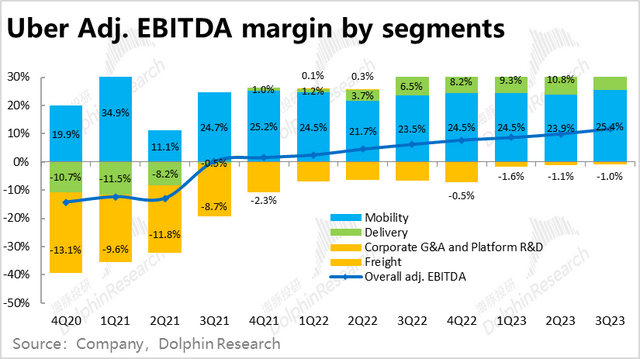 1)打车业务的Adj.EBITDA为12.9亿美元,利润率环比继续小幅提升,也略高于预期的12.5亿;