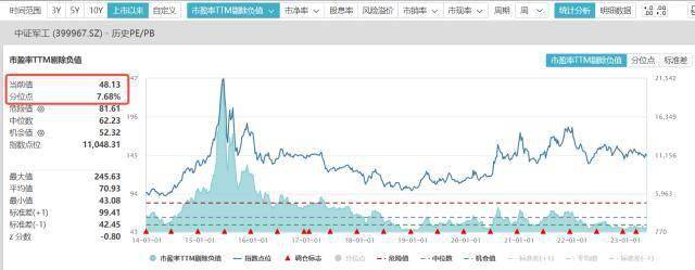 除了优秀的发展前景之外,军工板块估值已处于历史较低区间。Wind数据显示,中证军工指数剔除负值的滚动市盈率为48.13倍,低于指数发布以来约92%时间区间,配置性价比凸显。