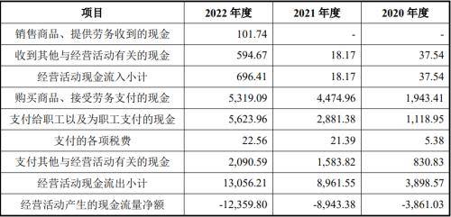 此外,报告期内艾柯医疗经营活动产生的现金流量净额持续为负,各期分别为-3861.03万元、-8943.38万元、-1.24亿元。