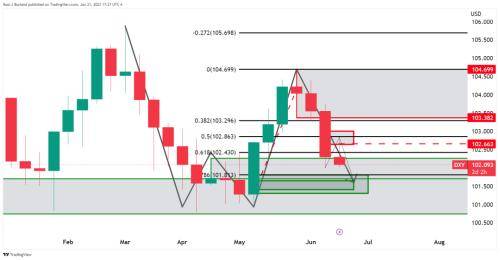 FXStreet分析师Ross Burland指出,美元指数从102.70跌至102.022的低点,接近上周的5周低点,而美联储仍暂时暂停,并担心硬着陆。下图说明了市场的技术结构,并得出如下看跌偏见。