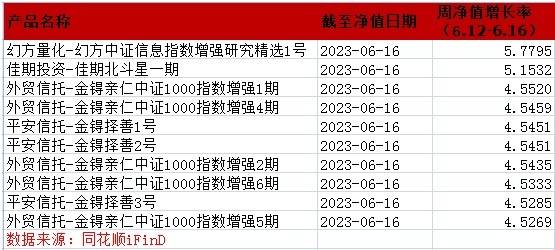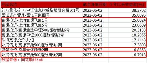 百亿量化私募旗下业绩靠前产品(截至6月2日)