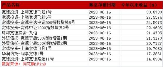 宽德投资旗下今年业绩前10产品(截至6月16日)