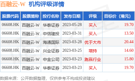 截至2023年5月29日收盘,百融云-W(06608.HK)报收于9.29港元,下跌7.1%,换手率0.8%,成交量339.0万股,成交额3212.66万港元。投行对该股的评级以买入为主,近90天内共有3家投行给出买入评级,近90天的目标均价为17.29港元。华泰证券最新一份研报给予百融云-W买入评级,目标价19.7港元。
