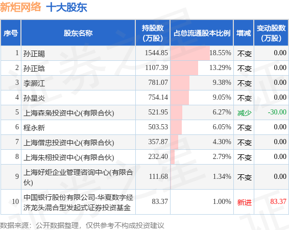 根据新炬网络2023年一季报公布的十大股东详情如下: