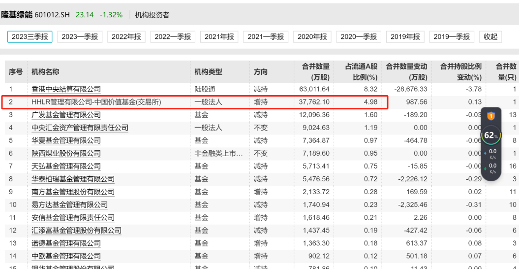 这两则来自三季报的信息应该联合起来看:在HHLR通过转融通方式出借的股份已全部到期归还的情况下,其对于隆基绿能的持股比重已经由出借前的5.85%降至5%以下,最新持股比例为4.98%。