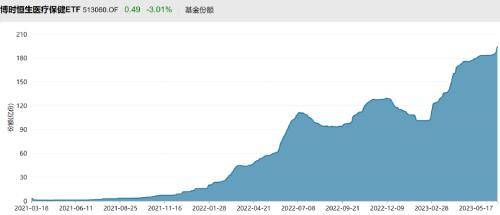 其中,华宝医疗ETF今年以来份额增加187.44亿份,至529.92亿份,创历史新高,资金累计净流入91.85亿元;易方达医药今年以来份额增加162.78亿份,至432.03亿份,净流入资金77.45亿元,6月13日该ETF刚创出433.85亿份的纪录新高;银华创新药年内份额增加50.14亿份,至93.31亿份,资金净流入47.09亿元,该ETF是在4月份份额新高。此外,博时恒生医疗ETF、广发港股创新药ETF、国泰生物医药ETF、广发创新药ETF、天弘生物医药ETF、广发医药卫生ETF年内资金净流入均超10亿元。