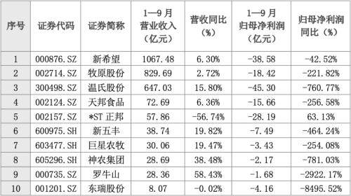 10家猪企前三季度全部亏损