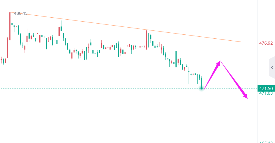 国内金走势分析:价格最近都是高位震荡,虽然美元指数大跌。现美元到支撑,黄金倾向反弹空为主。昨天475元/克附近受阻回落,夜间下破日内低点,日线收破位阴线。阻力478元/克附近,晚间横盘的高点在475元/克附近,不破都可以做空。今日金价小时线阻力在475元/克附近,也是日内多空分水,如果走弱会在476元/克附近先跌。下方目标先看474-472元/克附近,一旦有效下破还是继续看470元/克甚至更低。