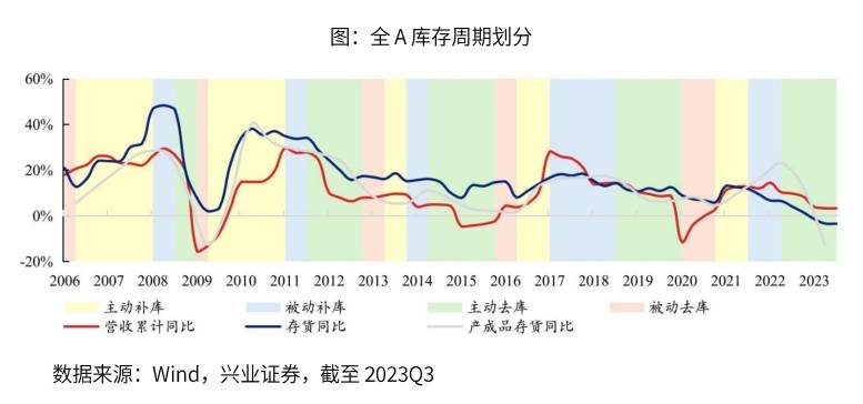 当前A股上市公司库存周期仍处于主动去库阶段,若后续需求得到持续改善,实际库存或有望最早在四季度见底。2023Q3全A非金融整体存货同比增速为-3.49%,较2023H1仅回落0.07pct,环比变化趋近于0。累计营业收入同比增速和存货同比增速的差值由2023H1的6.70pct上升至2023Q3的6.72pct。展望后续,稳增长政策密集出台,经济边际企稳迹象持续增加,基本面有望继续修复,本轮去库阶段已渐近尾声。