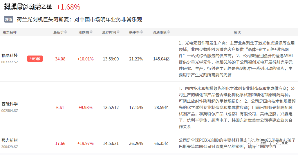 光刻胶板块今日大涨,福晶科技3连板,西陇科学、强力新材等涨停。