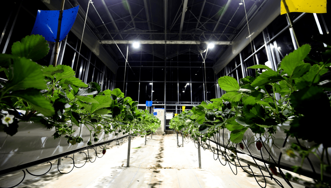 在“多多农研科技大赛”的比赛基地中,来自全球的青年科学家在探索利用人工智能、算法策略实现自动化种植草莓。(摄影:木公)