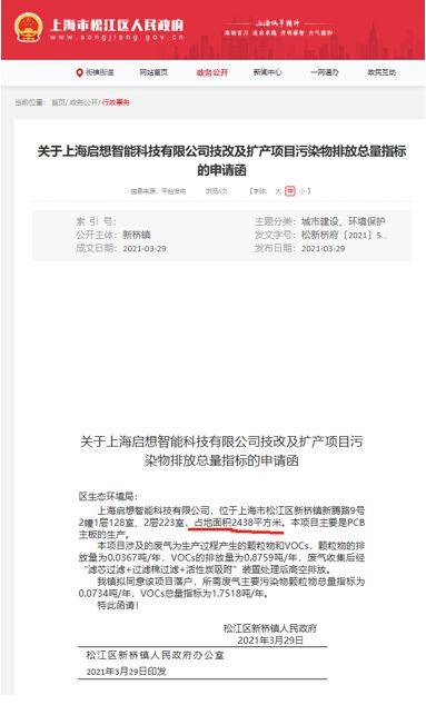 云汉芯城招股说明书披露了子公司启想智能租赁上海云澜实业发展有限公司位于上海市松江区新腾路9号2幢1层128室及2层223室厂房情况。信息显示,上述厂房租赁面积2561.5平米。但是上海市松江区新桥镇人民政府出具给区生态环境局的《关于上海启想智能科技有限公司技改及扩产项目污染物排放总量指标的申请函》显示,上海启想智能科技有限公司位于上海市松江区新桥镇新腾路9号2幢1层128室、2层223室,占地面积2438平方米。这与招股书相差123.5平方米。云汉芯城同样没有解释差异原因。