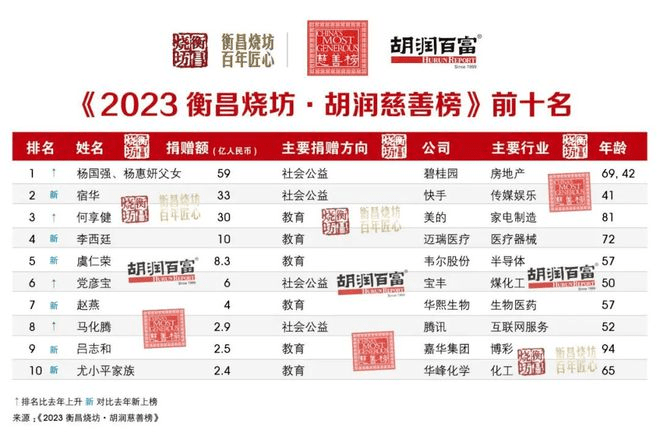11月8日,胡润研究院发布2023胡润慈善榜单显示,因向家族基金会捐赠碧桂园服务股份,碧桂园杨国强、杨惠妍父女以59亿元捐赠额首次位列胡润慈善榜第一,历年捐赠额超过150亿。