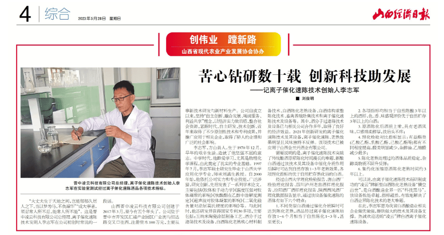 在此,李志军愿为我省白酒酿造业相关企业做优做强,提供强大的技术及其设备支撑。热诚欢迎选购“凌云”牌白酒离子催化速陈设备。