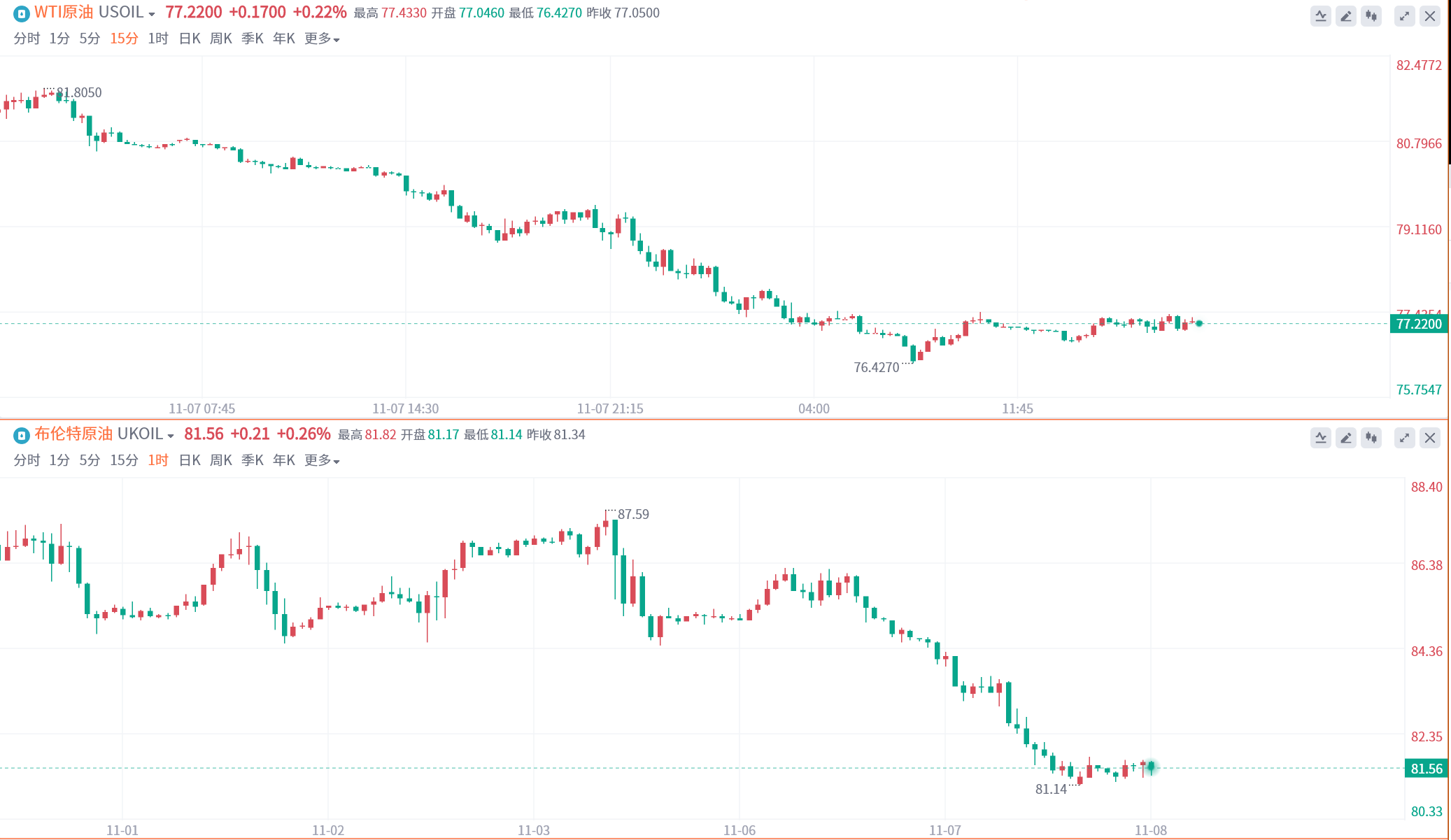 国际原油基准布伦特原油价格周二大跌超4%,至每桶81美元上方。与此同时,WTI原油价格自8月以来首次跌破每桶80美元。