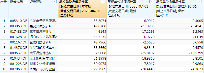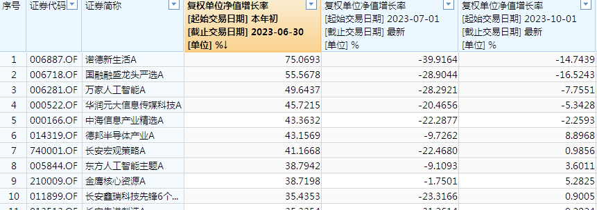 不过记者也看到,上半年混基冠军诺德新生活,以及普通股票型基金冠军广发电子信息传媒并没有在近期出现净值的大幅提升,反而是像嘉实互融精选、中欧智能制造等基金四季度以来涨幅居前。