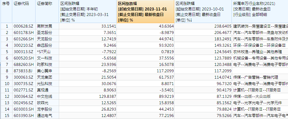 说明:一季度、四季度至今涨幅居前个股统计 (截至11.8) 来源:Wind截图