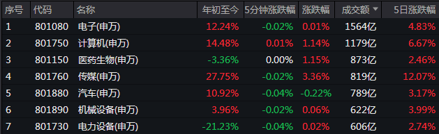 11月8日,截至收盘,电子、计算机、传媒成交额分别为1564亿元、1179亿元、819亿元,总计为3562亿元。按照当天A股成交额10399亿元来对比,占比达到34.25%,也就是说,AI范畴的成交额已经占到全天两市成交的三成。