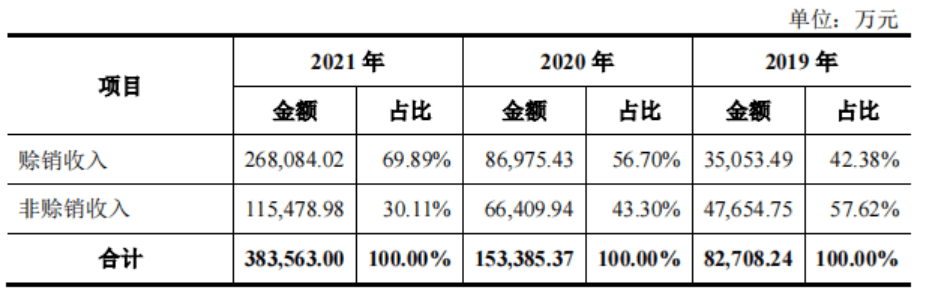 回复文件显示,从2019年开始,云汉芯城赊销收入大幅增长,从2019年的3亿元增长至2021年的26亿元,增长了近乎9倍,相比较而言,非赊销收入仅仅增长了3倍不到。